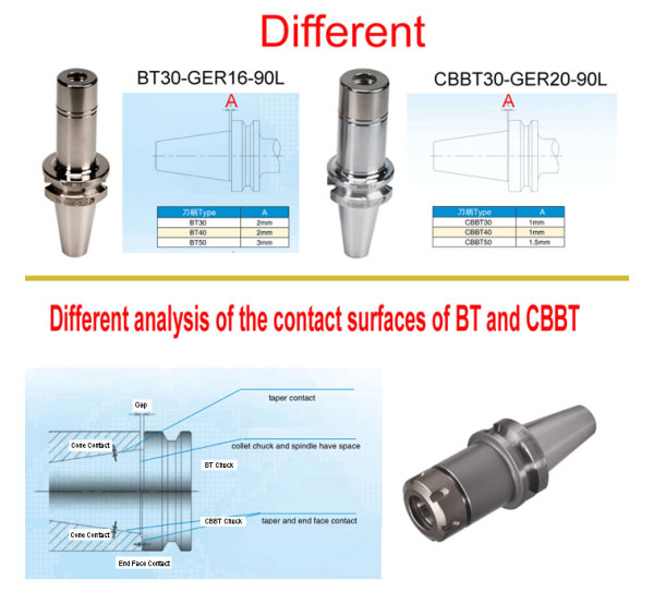 CBBT夹头卡盘是BT锥形夹头夹头的端面和锥度与主轴双接触。双面接触设计主要是提高工具架的刚性,稳定性和精度。